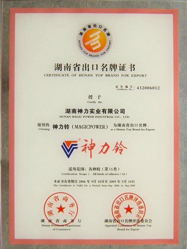 神力集團(tuán)喜獲湖南省出口名牌證書。
